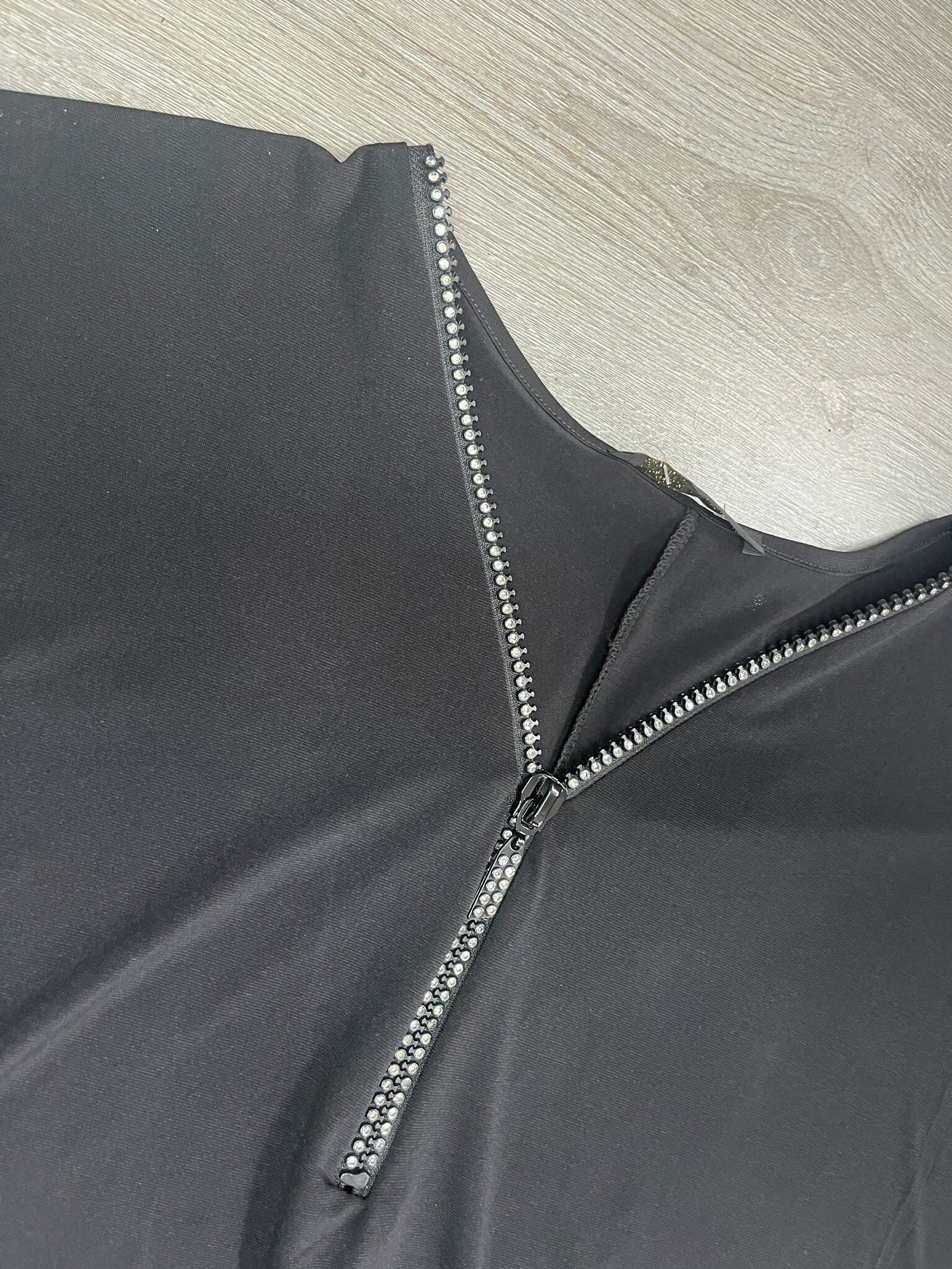 Top zwart met steenjes op de rits draagbaar tot maat 44.