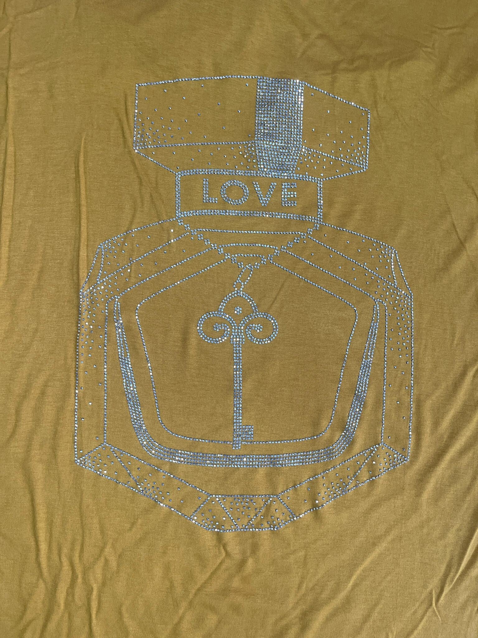 Top met steentjes print en kant op de rug vallen groot.