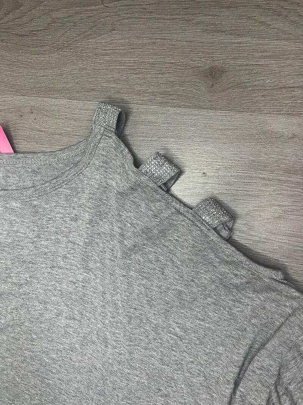 Top met steentje op de mouw en de onderzijde.