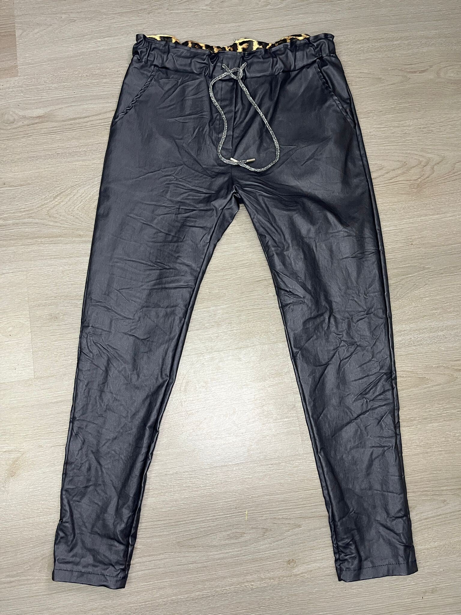 Comfi wax broek 1 maat tot maat 46/48 donker grijs met tijgerprint aan de binnenkant.
