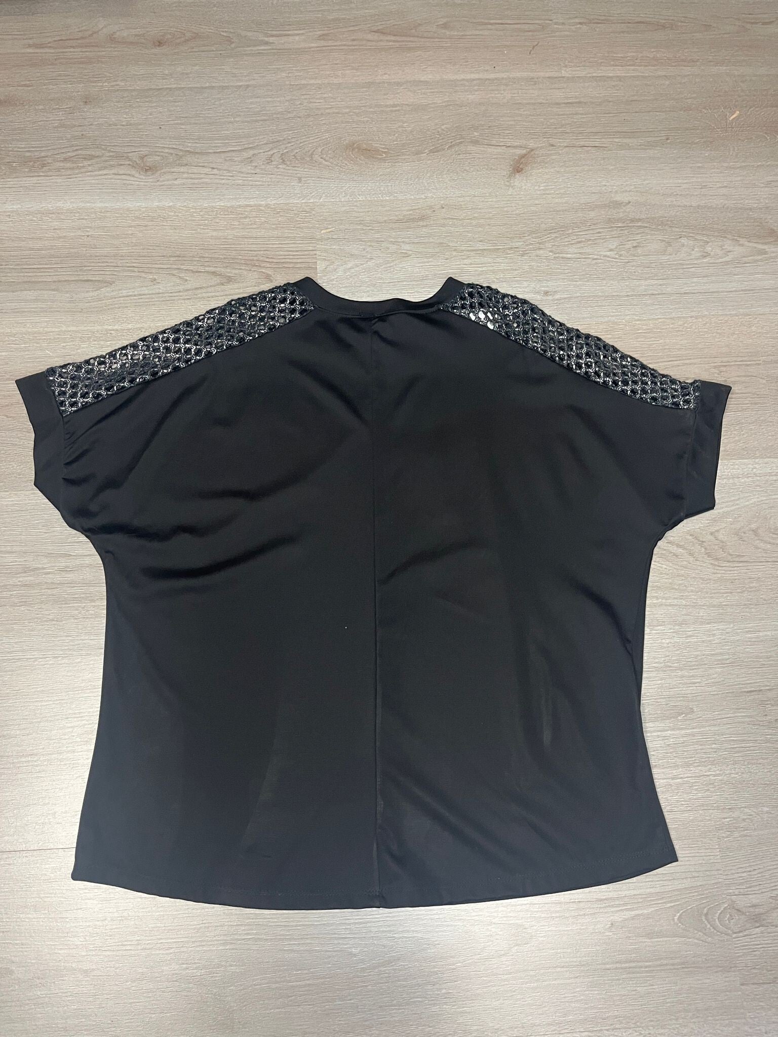 Shirt met gaatjes bies op de mouwen.
