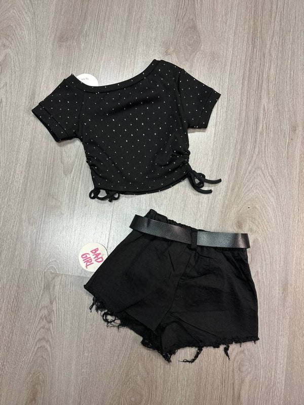 Leuke 2 delige set topje met korte broek met steentjes