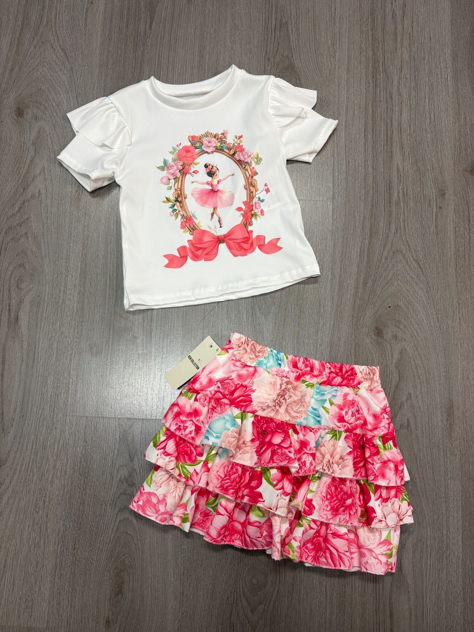 Leuke 2 delige set topje rokje met kort broekje er aan vast